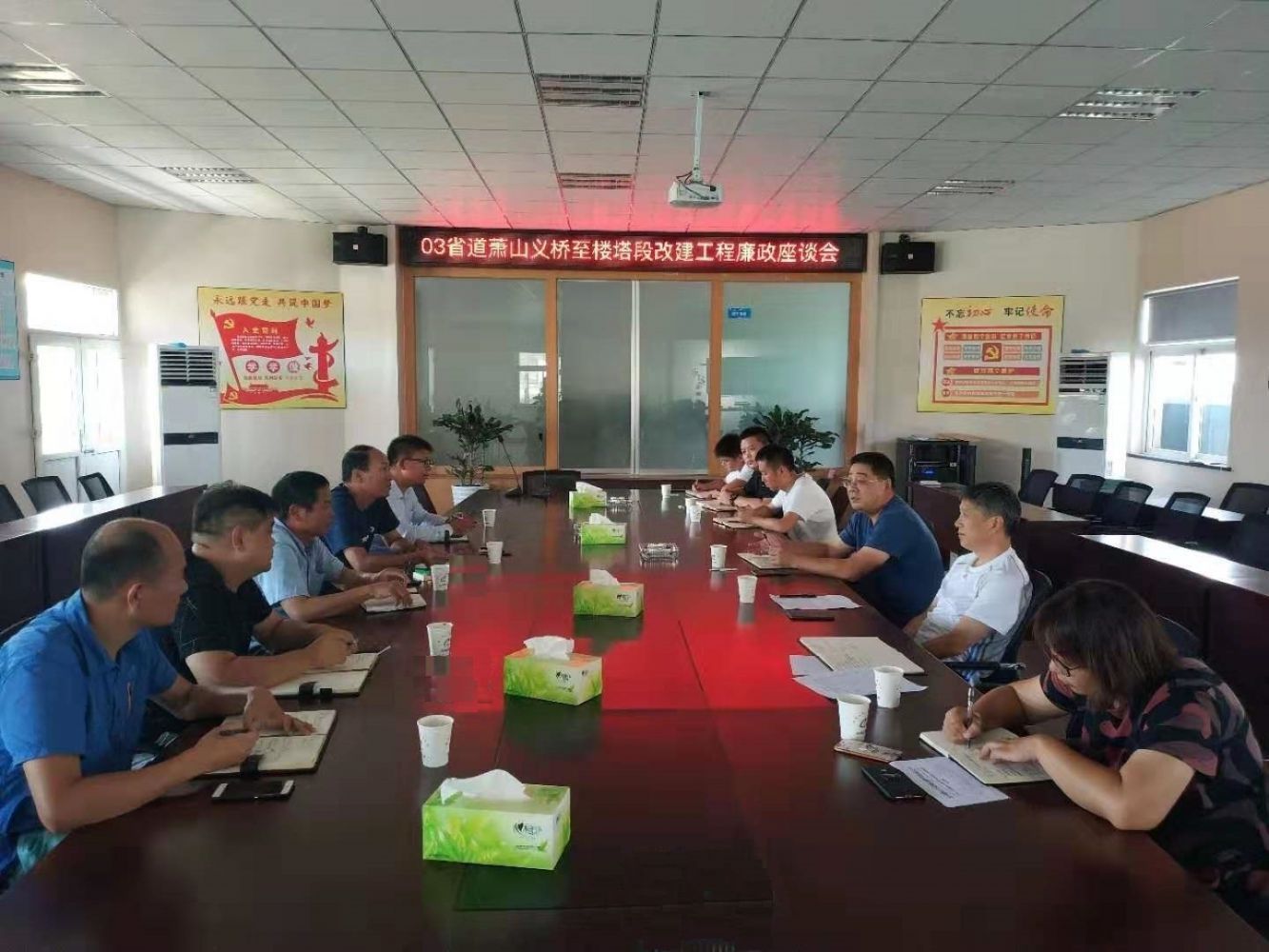 2019年8月2日下午兩點(diǎn)半,在03省道蕭山義橋至樓塔改建工程四標(biāo)項(xiàng)目部召開了03省道蕭山義橋至樓塔改建工程廉政座談會(huì)。會(huì)議由紀(jì)檢組組長(zhǎng)龔鐵峰主持,公司紀(jì)檢小組成員、公司項(xiàng)目管理人員、監(jiān)理辦、項(xiàng)目部負(fù)責(zé)人及管理人員代表參加。