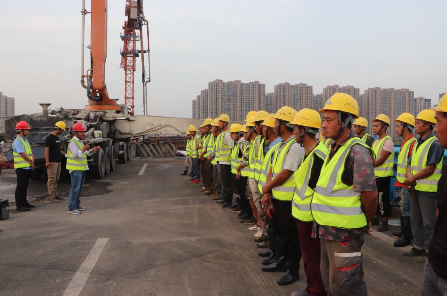 澆筑施工期間,項目領導現場帶班指導;現場技術人員遵照技術方案,仔細對每項工序把關;安全人員緊盯施工現場,杜絕安全隱患;質量人員嚴格把控施工質量。項目全體員工攻堅克難,確保順利完成澆筑任務,為進一步加快施工進程,完成年度生產目標而奮斗。