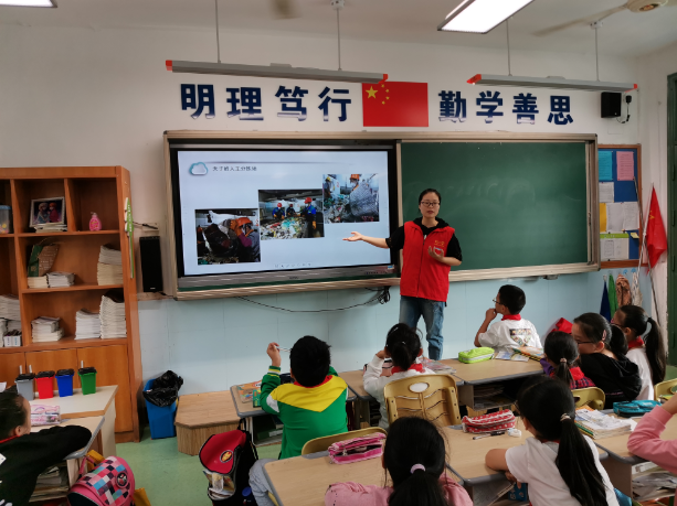 宣講活動中,志愿者以貼近小學生日常生活的 “生活垃圾分類”為主題,通過PPT展示、課堂演示、互動問答、派發垃圾分類宣傳冊等方式,向同學們展示了垃圾如何分類、垃圾的處理流程等知識。在互動問答環節,同學們熱情參與,積極回答志愿者提出的垃圾分類問題,在輕松娛樂的氛圍中掌握了垃圾分類的各種生活小常識。