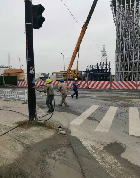 為加快工程施工進度,配合相關(guān)征遷需求,2019年11月22日上午8時,湘湖電力營業(yè)所與蕭山中新電力承裝公司派工對時代大道改建工程亞太路小礫A265線架空線進行停電割接作業(yè),上午10時完成停電割接工作。由于此路段車流量大,電力停電割接后續(xù)的下線工作存在一定難度,在第三項目部的密切配合下,對該路段進行臨時封道措施。電力承裝公司對架空線進行拆除收線工作,截止上午10點半,亞太路小礫A165線上改下全部完成,為時代大道166#主墩施工掃清了障礙,消除了一大施工安全隱患。