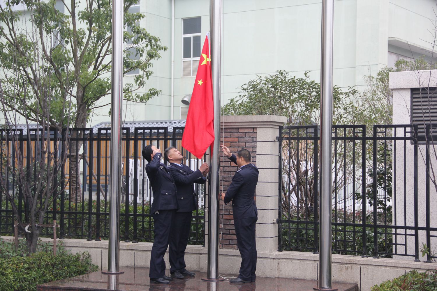 早上九點整,升旗儀式正式開始。在大家的注目禮下,三位英姿颯爽的護旗手護邁著鏗鏘有力的步伐護送國旗進場;伴隨著激昂嘹亮的《義勇軍進行曲》,升旗手振臂一揮,鮮艷的五星紅旗冉冉升起,公交干部職工人員齊唱國歌,深懷對祖國無限的熱愛,向祖國致以崇高的敬意和誠摯的祝福。