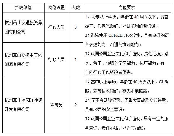 杭杭州蕭山交通投資集團因發(fā)展需要,公開招聘工作人員若干名,現(xiàn)將有關事項公告如下: