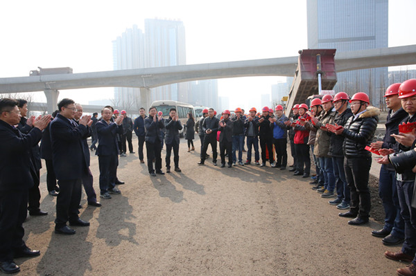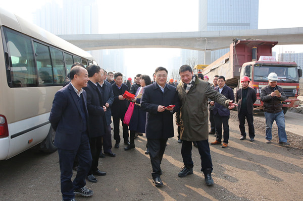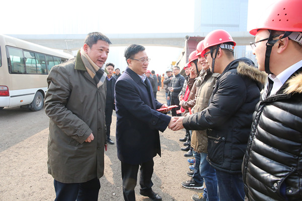 2月6日上午,副市長項永丹赴機場公路改建工程市心路互通地面道路施工現(xiàn)場對工程建設者進行慰問。市交通運輸局副局長華歷,副區(qū)長洪關良,區(qū)交通運輸局局長姜紀呈,集團董事長、總經(jīng)理方軍,副總經(jīng)理金文華陪同。