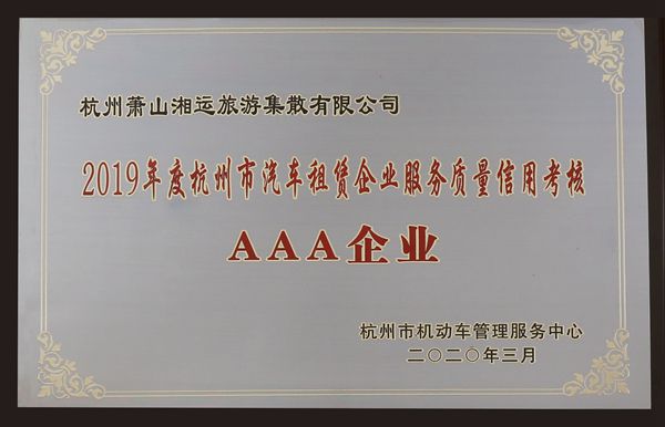 近日,長(zhǎng)運(yùn)公司下屬湘旅公司喜獲由杭州市機(jī)動(dòng)車(chē)管理服務(wù)中心授予的“2019年度杭州市汽車(chē)租賃企業(yè)服務(wù)質(zhì)量信用考核AAA企業(yè)”榮譽(yù)稱(chēng)號(hào)。