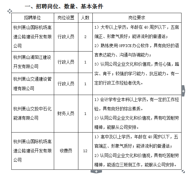 杭州蕭山交通投資集團因發展需要,公開招聘工作人員若干名,現將有關事項公告如下: