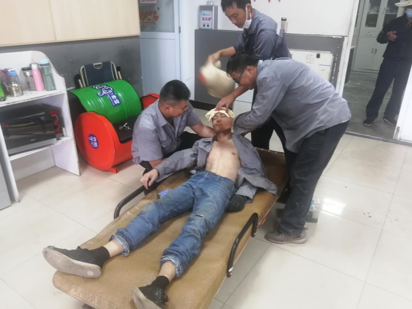按照演練流程和角色分工,模擬旅客突然中暑暈倒進(jìn)行應(yīng)急處置演練。演練中,一名修理工在在高溫環(huán)境下車輛維修作業(yè)過程中,出現(xiàn)頭暈現(xiàn)象,并隨后暈倒在地。同事發(fā)現(xiàn)險情后,立即通知班組長,隨后分公司負(fù)責(zé)人接到班組長事故報告后,立即啟動應(yīng)急預(yù)案,開展施救工作。現(xiàn)場職工合力將中暑員工抬至陰涼通風(fēng)處,救護(hù)組攜帶急救藥箱趕至演習(xí)現(xiàn)場,判斷病情后采用簡單應(yīng)急處置方法,用冷毛巾為中暑人員擦拭身體,解開病員上衣通風(fēng)透氣,用清涼藥品涂抹傷員人中,并給予適量清涼含鹽飲料,使病員快速降溫、補(bǔ)水、醒腦,最后,中暑人員緩慢蘇醒。