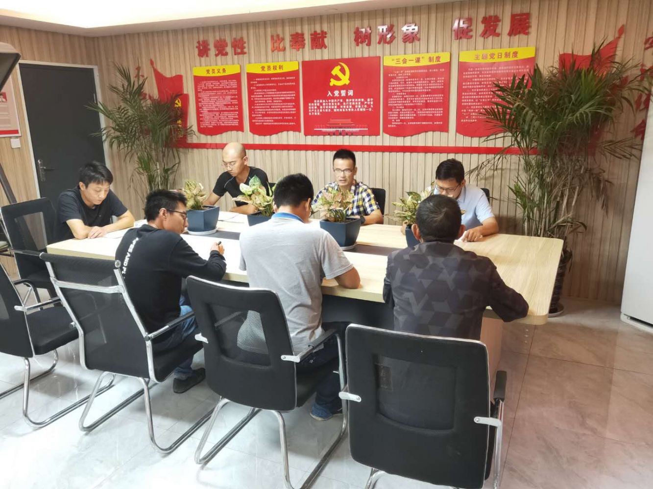 9月17日下午,天空飄著細(xì)雨。新塘街道姑娘橋村安置房項目部黨員活動室內(nèi)氣氛寧靜,地鐵投資公司黨建聯(lián)盟中的8名黨員同志趁著雨天及項目部剛結(jié)束生產(chǎn)監(jiān)理例會、安全生產(chǎn)培訓(xùn)會議的機(jī)會,正在認(rèn)真學(xué)習(xí)上級黨委文件、政治理論和反腐倡廉要求。