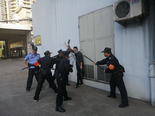 下午兩點,演練正式開始。一名由工作人員扮演的“可疑人員”持刀闖入公司站場。安保人員發(fā)現(xiàn)后立即向安保部和駐站分管民警匯報,同時啟動反恐應(yīng)急預(yù)案,準(zhǔn)備好防暴工具趕赴現(xiàn)場。三分鐘后警務(wù)人員趕到現(xiàn)場,安保小組成員手握鋼叉擋住“歹徒”,大家齊心協(xié)力將“歹徒”逼到墻角。“歹徒”被鋼叉控制不能動彈,安保小組隨即將其兇器奪下,“歹徒”被制服。此次演練公司聯(lián)合駐站警務(wù)人員,暢通警民聯(lián)動通道,更有效提升演練深度。同時,在演練活動結(jié)束后還組織全體安保人員進(jìn)行消防培訓(xùn),宣貫“119”宣傳月主題“關(guān)注消防、生命至上”主題。