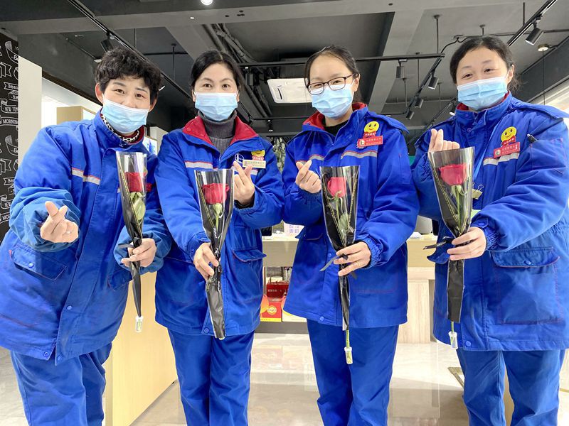 收到鮮花的女顧客們臉上洋溢著開心的笑容并向加油員們表達感謝,“一大早收到這么好看的玫瑰花,心情瞬間變得特別好,謝謝你們,有心了,也祝你們節日快樂”。“贈人玫瑰手有余香”,一線的女員工們用自己的真誠服務換來顧客的滿意和感恩。她們對自己的崗位工作感到無比充實和快樂,也同樣為他人帶去了便捷和歡樂。