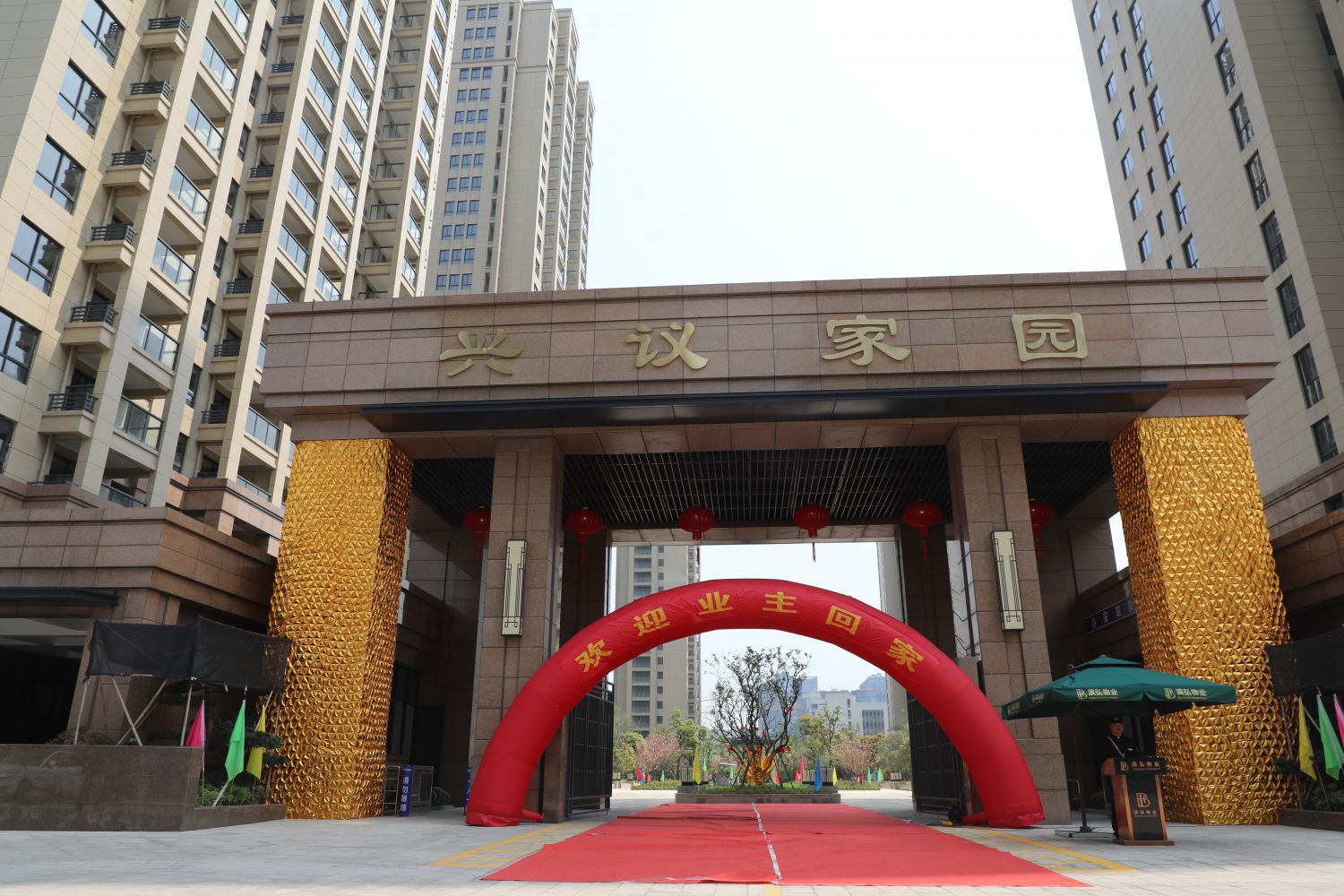 交房現場紅色氣球拱門,舞龍腰鼓輪番上演,一片喜氣洋洋,“歡迎回家”的標語讓人倍感親切。沿著指示牌來到交房中心,久別重逢的老鄰居們在等候區高興地拉著家常。