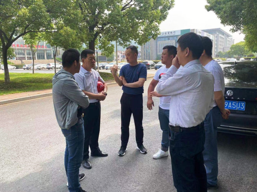 檢查組對時代大道沿線圍擋、道路整潔情況、人行道、綠化帶進行詳細檢查。發現沿線部分噴淋損壞無法使用、路面積塵、揚塵較大、圍擋破損等問題,立即進行整合,限時要求施工單位落實整改。公司總經理楊衛軍根據時代大道改建工程作為連接蕭山南片跟濱江的主干道,來往車輛多的現狀,如何做好作業揚塵控制,避免周圍圍擋破損的問題,給出了3條整改意見:一是沿線噴淋必須保障可以正常開啟、灑水車每天按既定頻率進行灑水,保障沿線道路濕潤;二是對于破損的圍擋、脫落的壓條土工布及時修復或者更換;三是道路兩側人行道、綠化帶內的白色垃圾要及時清理。