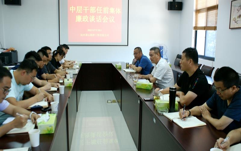 7月15日上午,路橋工程公司黨支部副書記、總經(jīng)理葉利民同志對公司新提拔的11名中層管理人員進行集體廉政談話。公司黨支部委員參加座談會。