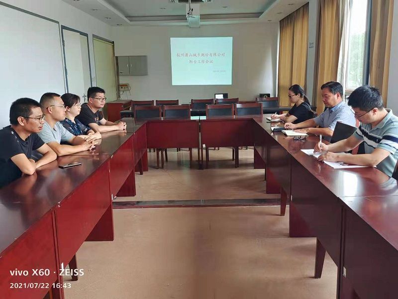 2021年7月22日下午,測繪公司負責人沈亦祥組織公司員工在大會議室緊急召開防臺工作會。