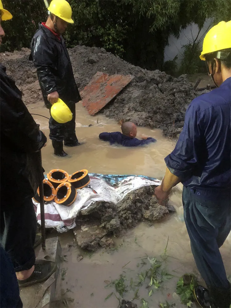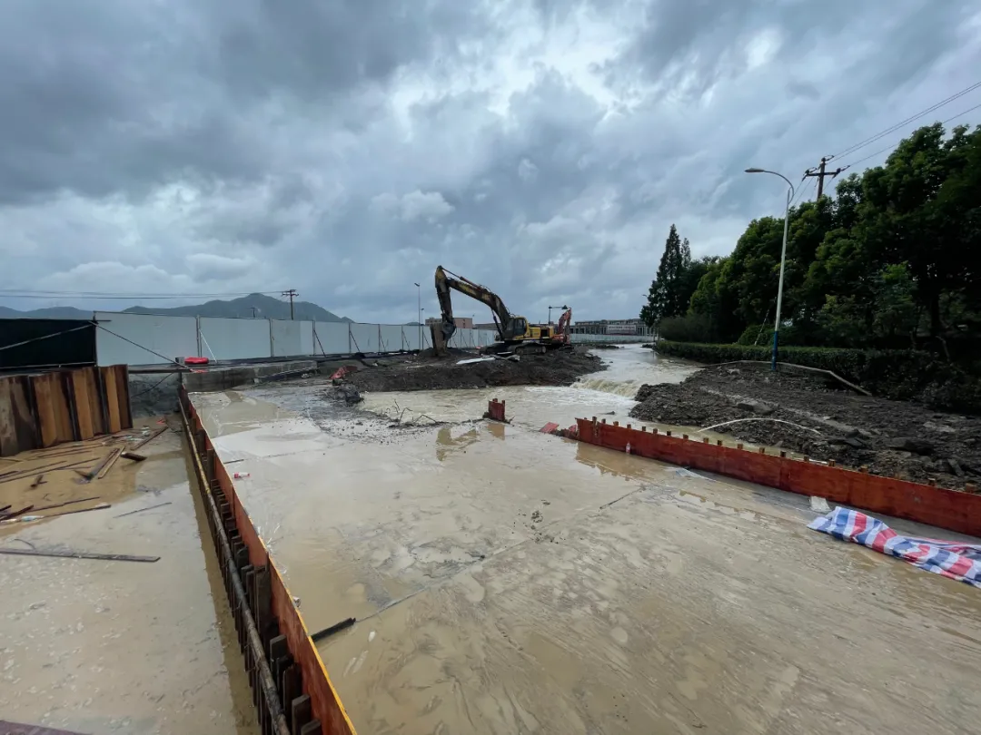 位于河上鎮(zhèn)03省道蕭山義橋至樓塔段改建項(xiàng)目1標(biāo)標(biāo)尾側(cè)的西山排澇溝因短時強(qiáng)降雨山水匯積水位暴漲,引起堤岸滲水、坍塌。交通建管公司總經(jīng)理?xiàng)钚l(wèi)軍立即組織搶險(xiǎn)隊(duì)趕往現(xiàn)場,同時調(diào)集時代大道南延項(xiàng)目救援力量支援。經(jīng)過近5個小時的搶險(xiǎn)加固,采取破涵引流等措施,險(xiǎn)情于下午17時基本排除。