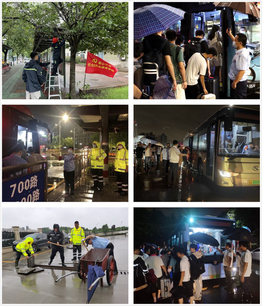 責任扛起來,黨旗飄起來。面對“煙花”的持續(xù)發(fā)威,公司黨委充分發(fā)揮戰(zhàn)斗堡壘作用,引領干部職工迎難而上、全力奮戰(zhàn);廣大黨員干部挺身而出、率先垂范,紛紛寫下請戰(zhàn)書加入先鋒突擊隊??古_防汛期間,公司全體班子、50余名中層干部、60余名管理人員以及2000余名一線職工甘愿放棄休息,各車隊冒著瓢潑大雨下線路、進站房,全面強化現(xiàn)場督導宣教,加強運營線路勘察預警;各職能部室沖在第一線、戰(zhàn)斗最前沿,分赴各重點場站及時疏導排水,消除內澇隱患,并持續(xù)跟進道路通行情況,確保隨時掌握汛情;廣大黨團志愿者積極響應黨組織號召,冒雨參加道路巡查、交通引導、隱患排查、排澇除險等志愿服務,共同凝聚起抗臺防汛的強大力量。