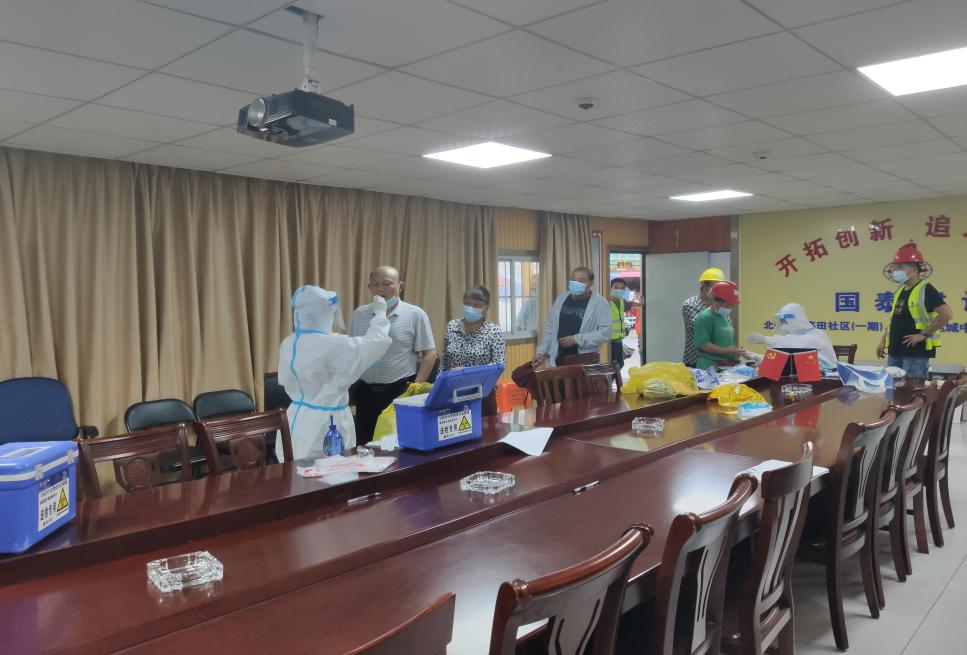 為合理安排時(shí)間,防止人員聚集,項(xiàng)目部提前設(shè)置專門等候區(qū)、信息登記區(qū)和采集區(qū),有序引導(dǎo)員工前往核酸檢測現(xiàn)場,嚴(yán)格做到不扎堆、不聚集、保持“一米線”安全距離,根據(jù)現(xiàn)場檢測人員情況靈活調(diào)度,以每5人為一組進(jìn)行檢測,確保工作開展有序進(jìn)行。經(jīng)過近三個(gè)小時(shí)的采樣,此次全員檢測工作圓滿完成。