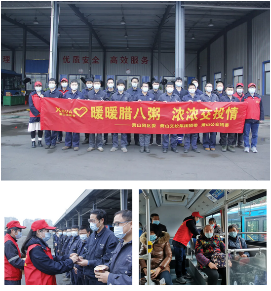 蕭山公交志愿者們早早來到通惠路公交站,帶著美好的祝愿和濃濃的關愛,將一碗碗香飄四溢的臘八粥送給現場的市民乘客以及駕駛員、調度員、站員、保安、保潔員等一線職工。此外,志愿者們還來到修理分公司進行臘八節送溫暖活動,為一線維修人員送去一碗碗香甜的臘八粥,給寒冷的冬季帶來了絲絲溫暖。