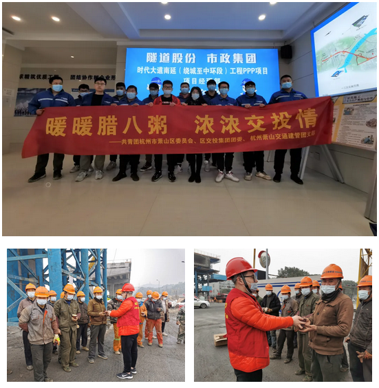 蕭山地鐵投資公司黨員代表積極行動,來到公司所屬工地,為在這寒冷的冬天仍然奮斗在一線的工友們送上了一碗碗暖暖的臘八粥。