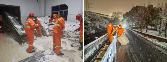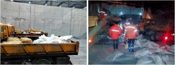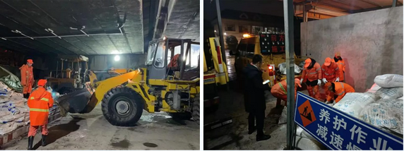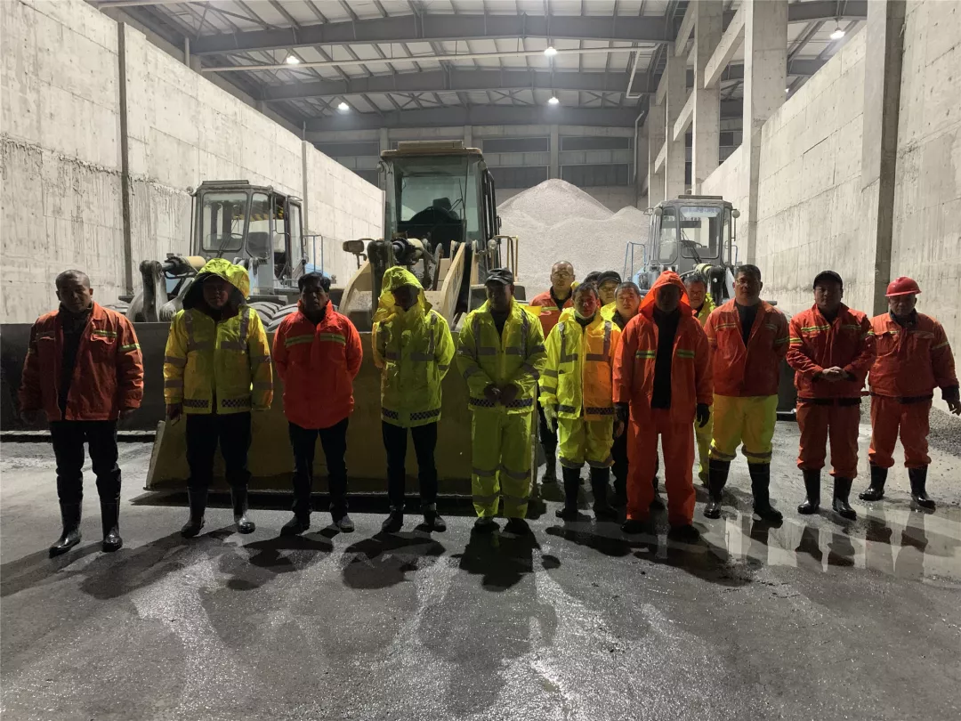 路橋工程公司立即啟動應急機制,成立應急抗雪搶險小分隊,25位小分隊成員放棄春節(jié)在家休息, 24小時在拌和中心候命,人、機、料集結到位,聞令而動,隨時待命。共組織預警搶險車5輛、鏟車3輛、工業(yè)鹽5噸、防滑草袋2000只,主要保障時代大道、塘新線及路橋各在建施工路段的道路安全。