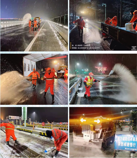 截至2月3日6時,養(yǎng)護公司共出動搶險小組5組,搶險人員146人次, 撒布機5臺次,輕便型除雪機2臺次,撒布融雪劑30噸、工業(yè)鹽11噸,其它車輛32臺次,重點對03高架、紅十五線、風情大道、塘湄線、八柯線、建設四路等國省道及重要縣道進行除雪作業(yè),所有管養(yǎng)公路通行正常,高架路段、下穿路面無積冰積水,再次完成了一場漂亮的抗雪攻堅戰(zhàn)!
