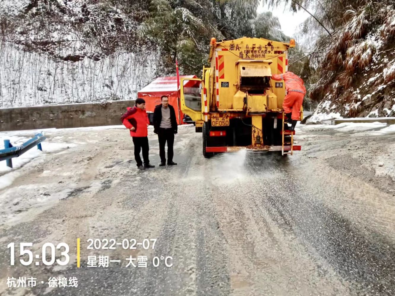 上午,由于我區(qū)出現(xiàn)明顯雨雪天氣過程,雪雨量中到大,南片樓塔、河上、戴村等鄉(xiāng)鎮(zhèn)有明顯積雪。會議結(jié)束后,公司負(fù)責(zé)人徐全民迅速出發(fā)趕赴徐樟線指導(dǎo)抗雪工作。截至下午3點,公司共出動搶險小組5組人員179人次,撒布機(jī)3臺次,輕便型除雪機(jī)3臺次,高壓沖洗車10臺次,鏟車1臺次,斜角掃雪器1臺次,撒布融雪劑6噸、工業(yè)鹽5噸,草包50只,其它車輛39臺次,路面積雪基本清除,通行正常。