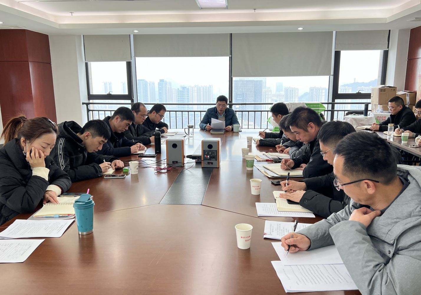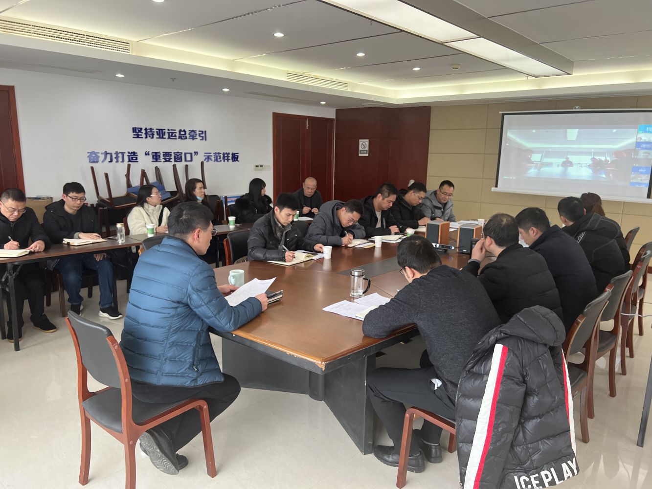 2月22日下午,交投養護公司召開2022年度黨風廉政工作會議。公司中層及以上干部、公司本部行政人員在會議室參加會議。站部行政人員則通過釘釘視頻參加本次會議。