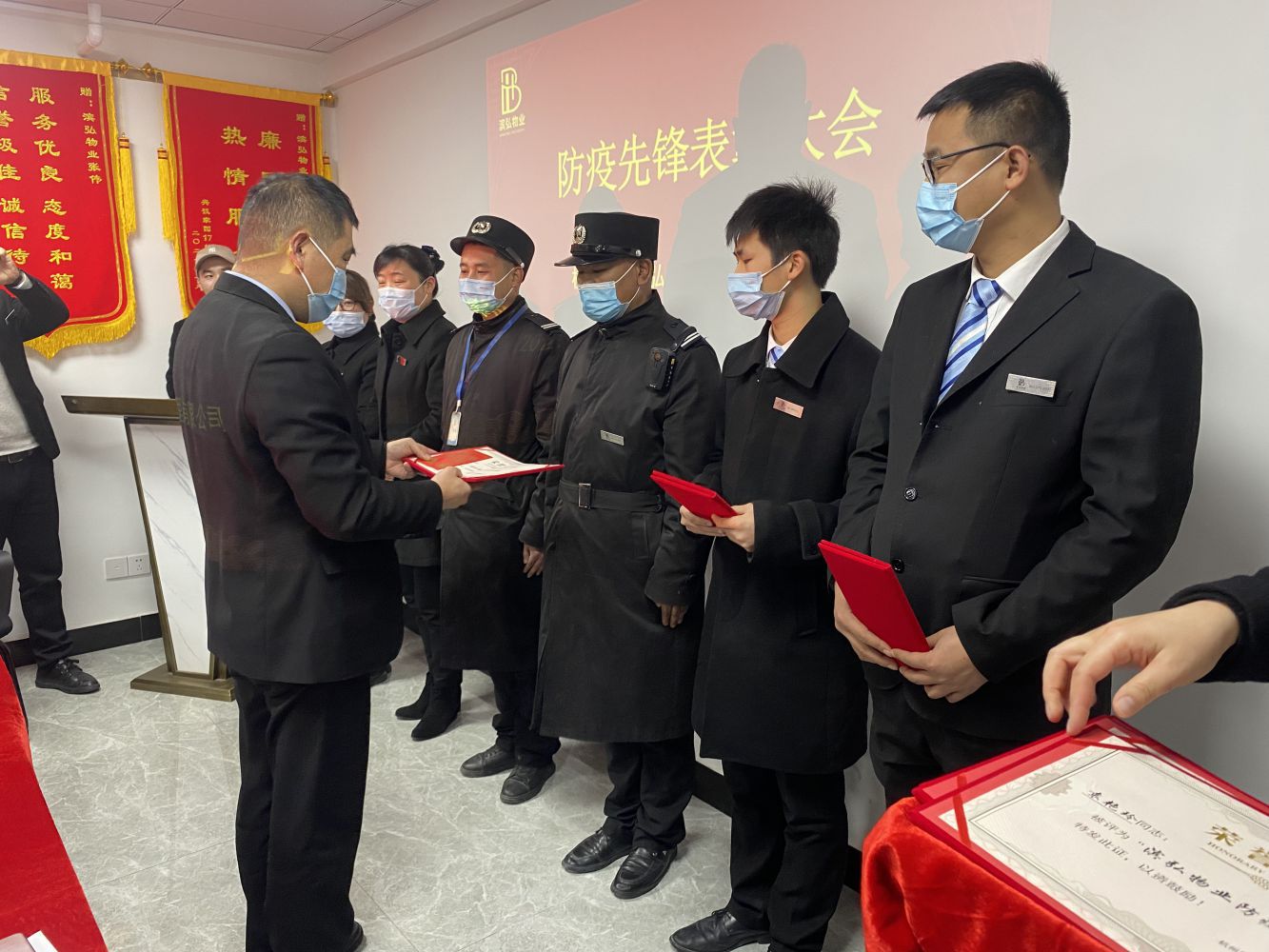 為激發(fā)公司全體員工迎難而上、共克時(shí)艱的昂揚(yáng)斗志,大力弘揚(yáng)敬業(yè)奉獻(xiàn)精神,杭州蕭山濱弘物業(yè)管理有限公司于2022年2月25日下午13:00在興議家園服務(wù)中心二樓會(huì)議室組織召開(kāi)防疫先鋒表彰大會(huì),對(duì)在疫情防控工作中做出突出貢獻(xiàn)的先進(jìn)個(gè)人予以表彰。