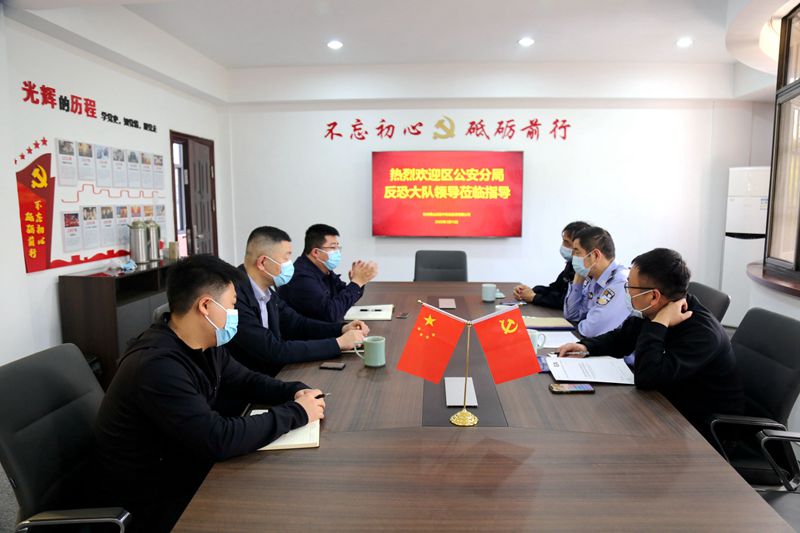 近日,蕭山區(qū)公安分局反恐大隊教導(dǎo)員楊國鋒一行蒞臨交投能源公司就反恐維穩(wěn)迎亞運工作進行指導(dǎo)調(diào)研,公司董事長趙宇、總經(jīng)理黃博斌及職能部室負責(zé)人陪同。