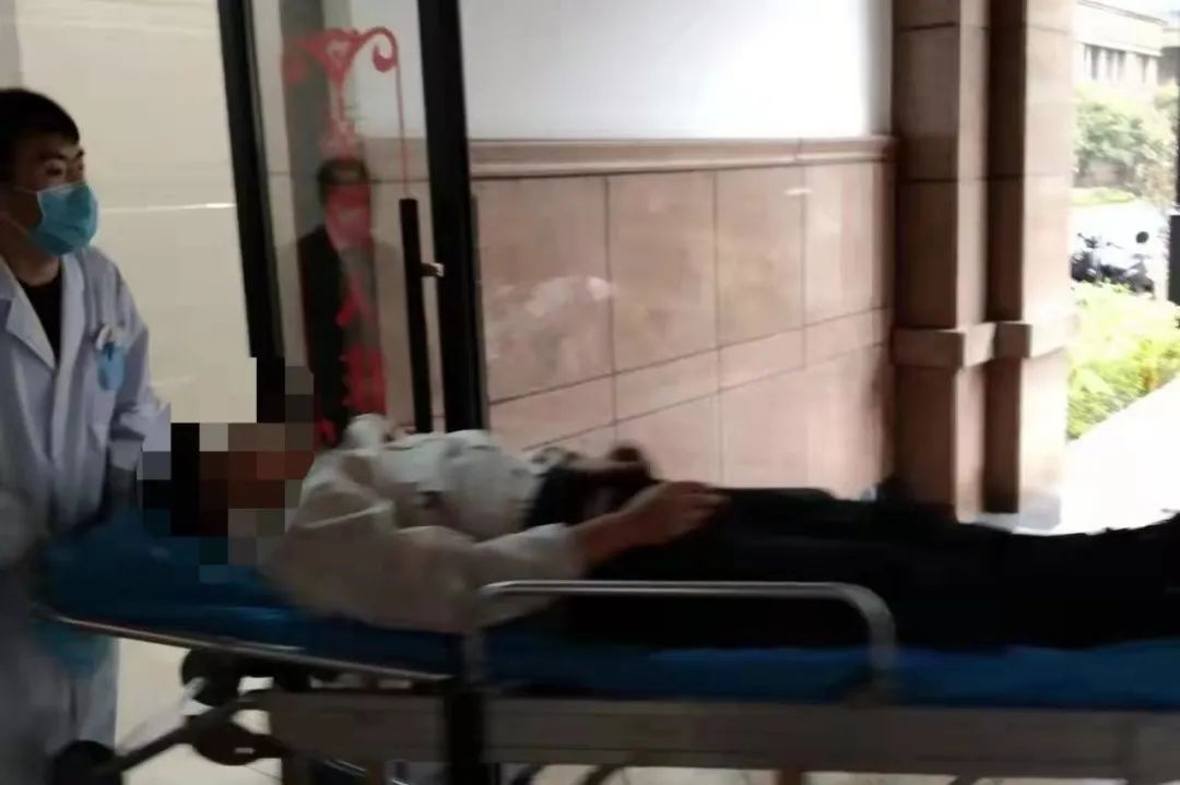 下午17時01分,救護車趕到,接走了傷員。在確認傷員無大礙后,在場工作人員又重新投入到各自的工作中。