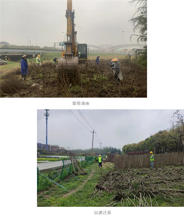 現施工單位蕭山交投路橋工程公司分點實施,全力以赴進行樣板段的清表與遷苗工作,爭取在4月上旬完成三個樣板路段的施工,5月底完成全線施工,讓“省門第一路”以煥然一新的面貌迎接亞運健兒與四海賓朋。