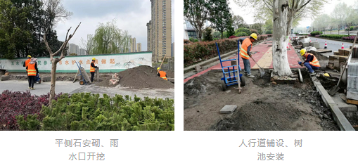 通惠路:平側石拆除2904米,占總量的79%;平側石安砌1951米,占總量53%;人行道拆除1599平方米,占總量的99%;人行道鋪設1539平方米,占總量的96%;雨水口新增446座,占總量的55%。