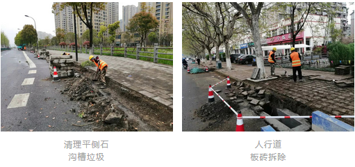 道源路:平側石拆除3035米,占總量的43%;平側石安砌2200米,占總量的31%;人行道拆除11490平方米,占總量的60%;人行道鋪設4000平方米,占總量的21%;雨水口新增43座,占總量的33%。