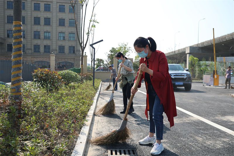 此次黨日活動(dòng)主題為“迎亞運(yùn) ——志愿保障服務(wù)”,同時(shí)響應(yīng)即將到來的國際“五一”勞動(dòng)節(jié)。黨員志愿者們致力于維護(hù)亞運(yùn)會保障工程的美潔,紛紛拿出工具清掃起來。頂著將近30度的太陽,189個(gè)車輛停車位上的落葉及白色垃圾在15名黨員和入黨積極分子志愿者的共同努力下,耗時(shí)50分鐘就清理完畢,呈現(xiàn)出光鮮亮麗的形象。