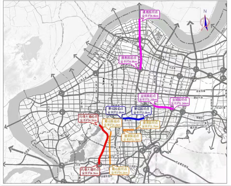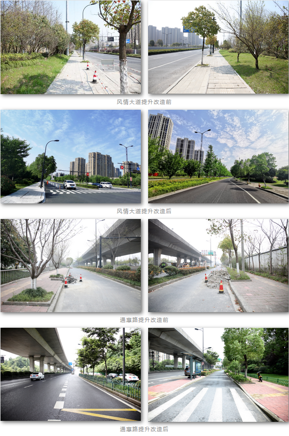 6條道路分別為:蜀山路(潘水路-亞太路)、通惠路(機場互通-九堡大橋)、金城路(新城路-塘湄線)、道源路(市心路-通惠路)、風情大道(湘湖隧道-亞太路)、蕭紹路(市心路-城東立交),提升內(nèi)容涵蓋路基路面、綠化景觀、橋梁涵洞、人行道、排水口改造等。