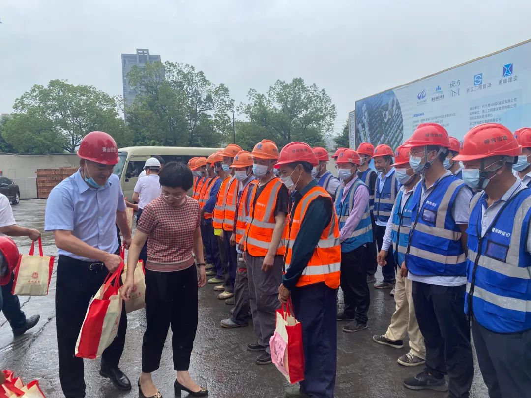 趙立明親切詢問了項目進(jìn)度、工人高溫作息時間和建設(shè)單位防暑降溫措施等,對建設(shè)者們不畏高溫、忠于職守、辛勤工作表示衷心感謝,并為一線工人送上防暑降溫物品。