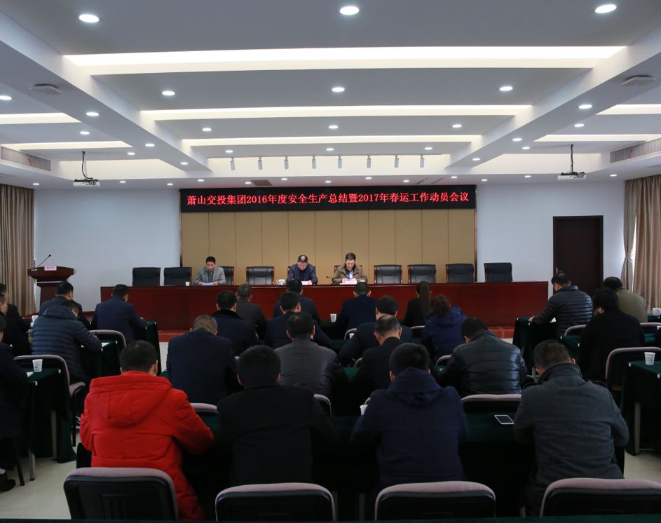1月9日下午,交投集團召開2016年度安全生產總結暨2017年春運工作動員會議。集團董事長、總經理方軍,副總經理王齊天,集團公司各部室、所屬各單位主要負責人,各單位安全生產分管領導、客運分管領導,安全職能部門負責人以及安全工作者50余人參加會議。會議總結回顧了集團2016年度安全生產工作;提出了2017年安全工作思路和舉措;簽訂了2017年度安全生產暨綜合治理目標管理責任書;部署了春運工作相關事宜。