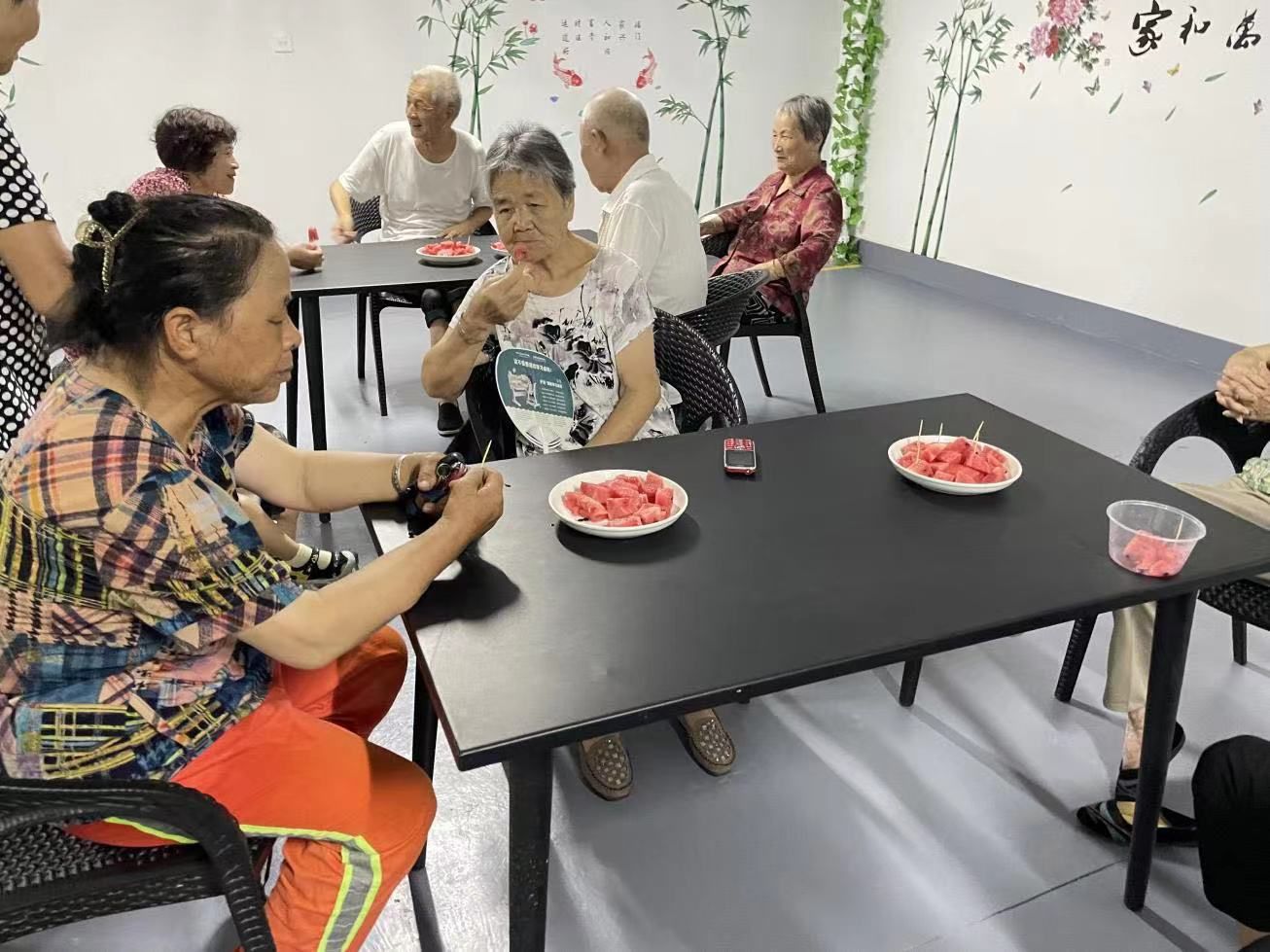 一大早,得到消息的業(yè)主們便紛紛來(lái)到了現(xiàn)場(chǎng)。明亮的活動(dòng)區(qū)墻上貼著帶有美好寓意的中國(guó)風(fēng)墻貼,一臺(tái)大大的電視掛在墻上,正播放著電視,大家圍坐在桌四周,落地扇給他們帶去了清涼。服務(wù)中心貼心的準(zhǔn)備了消暑水果盤,大家開心地吃著西瓜聊著天,享受著這幸福的夏日清涼。