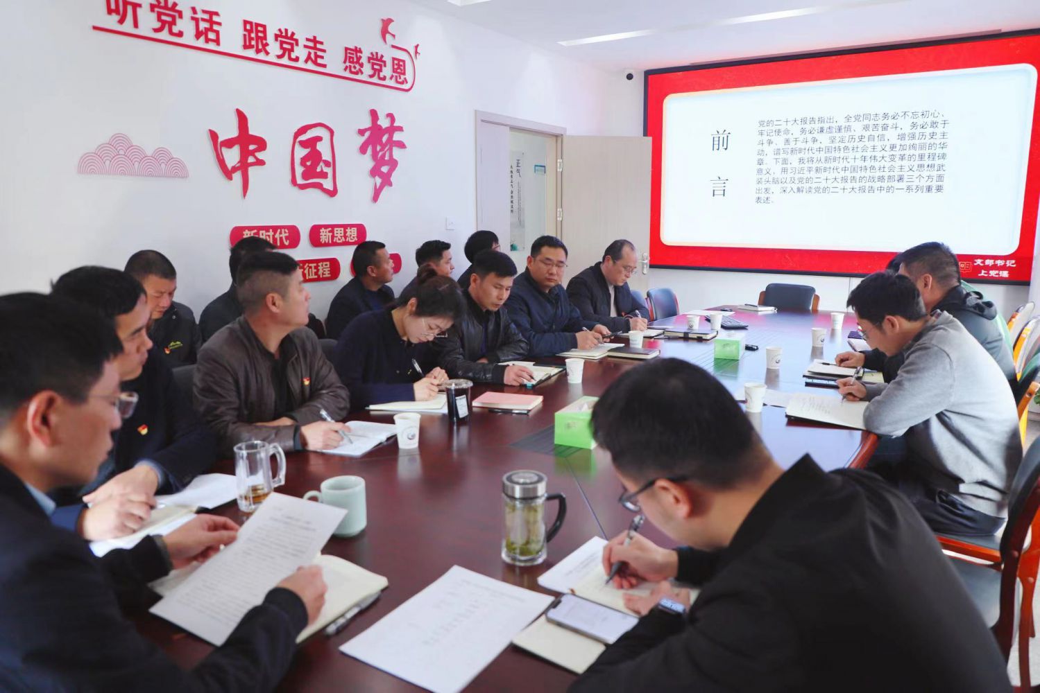 學(xué)習(xí)宣傳貫徹黨的二十大精神,是今年黨史學(xué)習(xí)教育常態(tài)化工作的重中之重。支部書記、總經(jīng)理徐全民首先以《學(xué)習(xí)把握落實黨的二十大精神譜寫新時代中國特色社會主義更加絢麗的華章》為題,從新時代十年偉大變革的里程碑意義、用習(xí)近平新時代中國特色社會主義思想武裝頭腦以及黨的二十大報告的戰(zhàn)略部署三個方面出發(fā),深入解讀黨的二十大報告中的一系列重要表述。