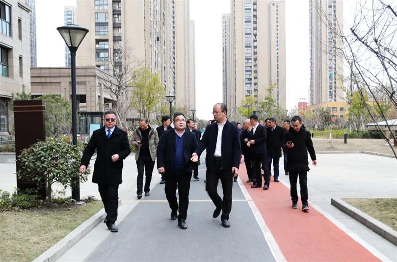 集團副總經理、交通新鎮公司總經理鐘波帶領考察組一行先后來到北干街道塘灣名苑安置小區和新塘街道和平橋名苑安置小區,實地考察了解項目建設和管理經驗,并就戶型設置、配套設施等方面進行交流探討。