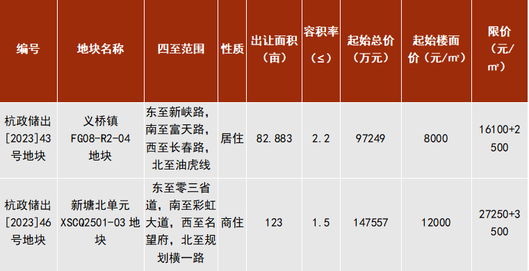 3日24日,在杭州市規(guī)劃和自然資源局蕭山分局、區(qū)住建局等相關(guān)部門的鼎力支持下,由蕭山交投集團(tuán)作為做地主體負(fù)責(zé)實(shí)施開發(fā)的杭政儲出[2023]43號地塊、杭政儲出[2023]46號地塊正式在浙江省土地使用權(quán)網(wǎng)上交易系統(tǒng)中發(fā)布出讓公告。
