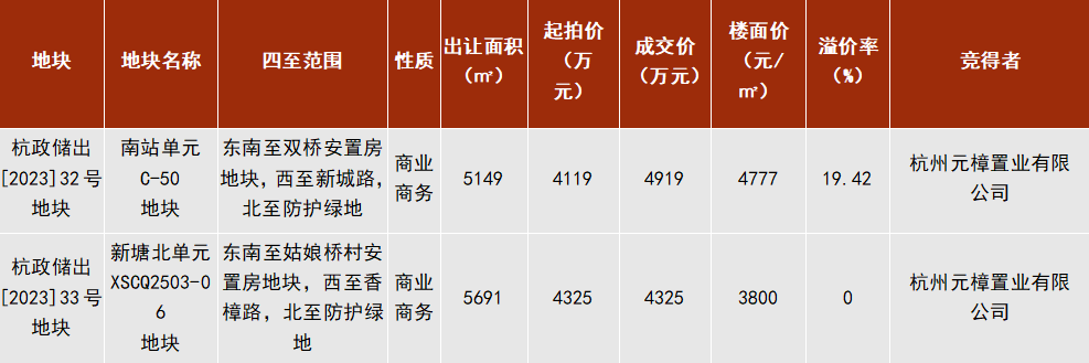 該地塊東至雙橋社區(qū)安置房,南至雙橋社區(qū)安置房,西至新城路,北至站前東路,出讓面積5149㎡,容積率2.0,建筑面積10298㎡。地塊需全部自持,不得(預(yù))銷售、不得轉(zhuǎn)讓。地塊成交價(jià)4919萬(wàn)元、樓面價(jià)4777元/㎡,由地鐵公司下屬杭州元樟置業(yè)有限公司競(jìng)得。