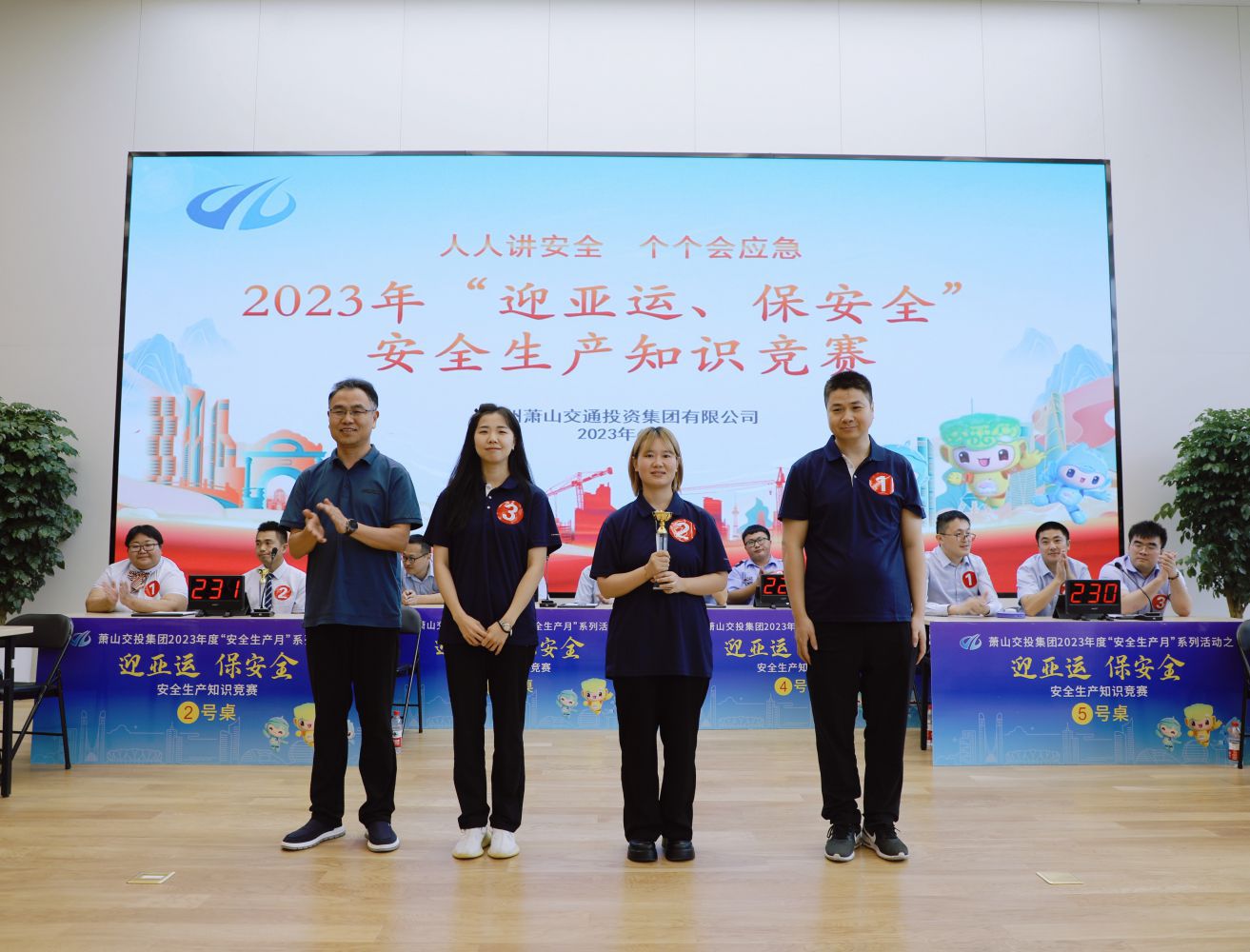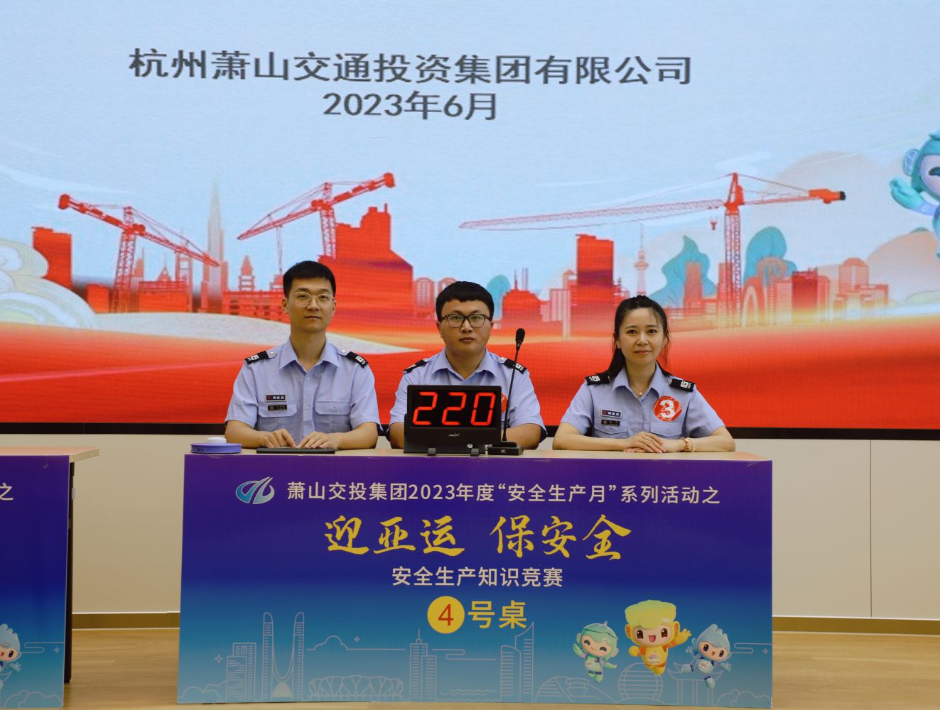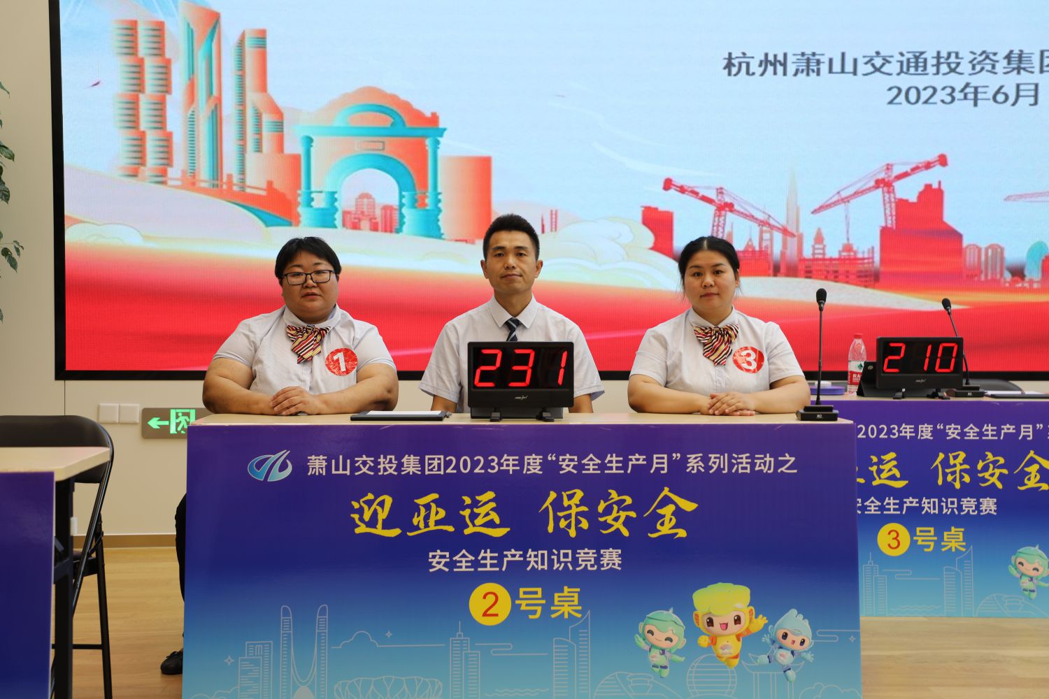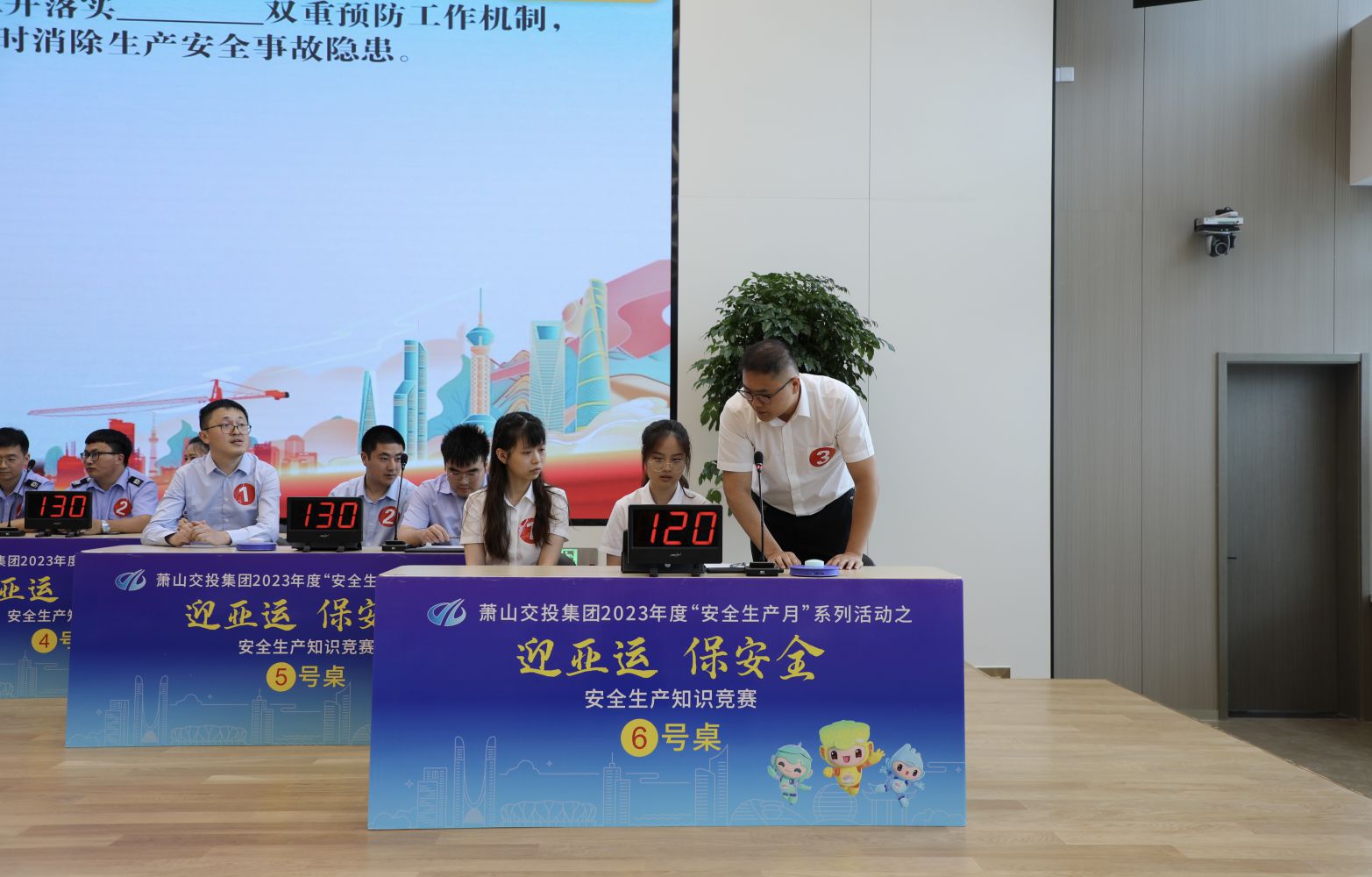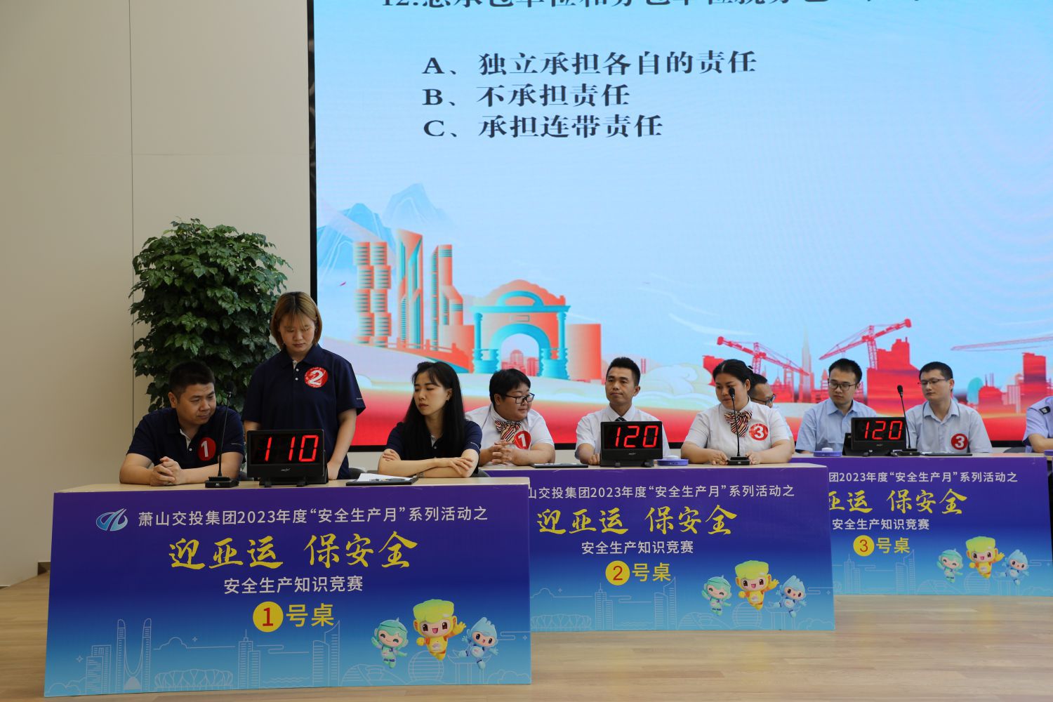為進(jìn)一步加強(qiáng)廣大職工的安全生產(chǎn)意識(shí)和自我保護(hù)能力,促進(jìn)集團(tuán)安全生產(chǎn)工作再上新臺(tái)階,6月29日下午,蕭山交投集團(tuán)舉行2023年“迎亞運(yùn)、保安全”安全生產(chǎn)知識(shí)競(jìng)賽決賽。集團(tuán)班子領(lǐng)導(dǎo)出席活動(dòng)并擔(dān)任評(píng)委,各部室負(fù)責(zé)人,子公司黨組織、行政負(fù)責(zé)人,安全生產(chǎn)分管負(fù)責(zé)人及相關(guān)管理人員、一線職工代表等150余人觀摩競(jìng)賽。