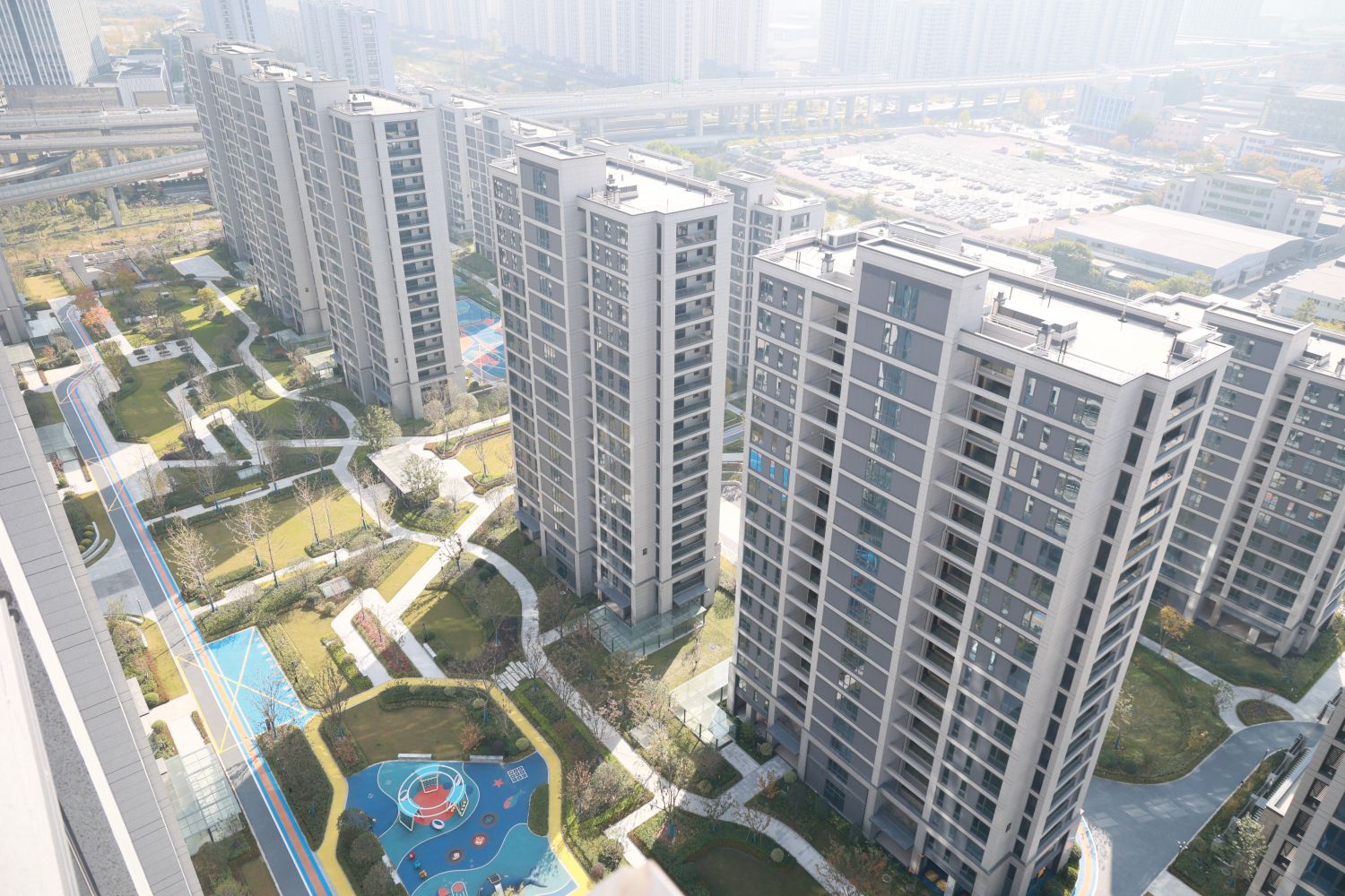 姑娘橋安置房項目于2020年開工建設,交投集團始終將安置房建設擺在民生事項中的首要位置,堅持高水平設計、高標準建設,努力打造高品質安置房,筑就民生“幸福巢”。歷經3年多的時間順利完成回遷安置。該項目位于蕭山區姑娘橋地鐵站樞紐區,東至03省道塘湄線,南至蕭紹運河綠化帶,西至知行路,北至姑娘橋地鐵站。項目地塊用地面積80395平方米,地塊內設置70方、90方、120方、140方四種戶型,安置總套數為1225套。項目由6棟12層、6棟18層、6棟26層住宅及配套商業等組成,整體建筑色調清新、簡約大氣,小區內綠意盎然、整潔美觀,游樂健身設施一應俱全,配套環繞健身跑道、網球場、羽毛球場等,滿足不同年齡段人群需求,為住戶營造景美、舒適的生活環境,是一個能大大滿足人們獲得感、幸福感的宜居小區。