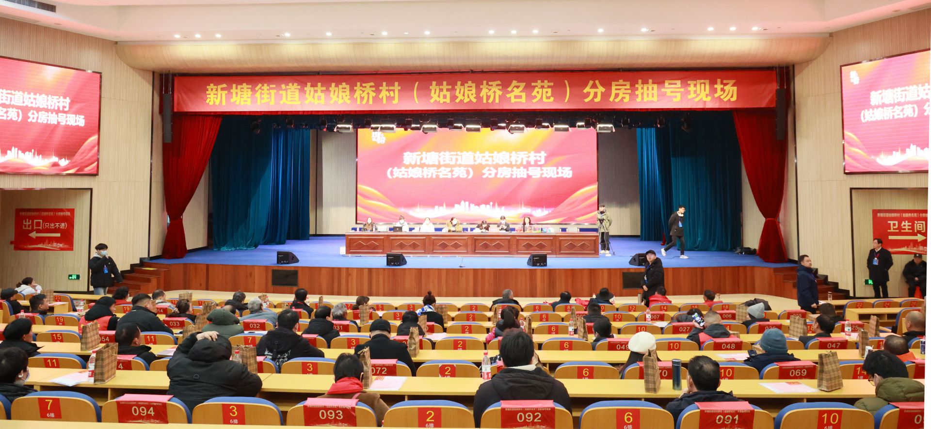 對于姑娘橋村人而言,這注定是個難忘的周末。雖是寒潮來襲、氣溫驟降,但零下4度的嚴寒也抵擋不住他們似火的熱情。一大早,按捺不住激動心情的村民已陸續抵達場外等候,現場一片喜氣洋洋。工作人員認真核驗證件、維持秩序,引導各位村民就座,分房工作有條不紊地進行。現場還貼心地搭建了群眾休息區,為等待的人群提供一方溫暖天地。