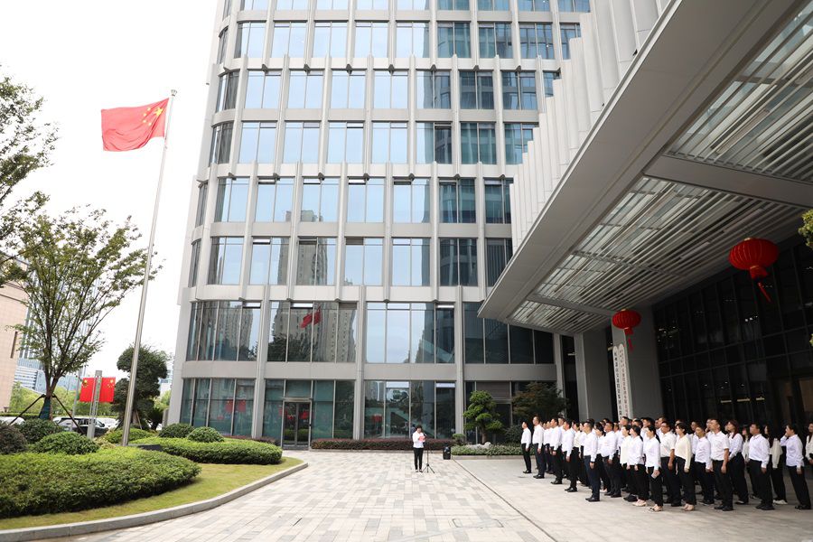 上午9時許,升旗儀式正式開始。隨著一聲口令,在高昂雄壯的國歌聲中,莊嚴(yán)的五星紅旗冉冉升起。大家神情專注,肅然而立,向著迎風(fēng)飄揚的五星紅旗行注目禮,以此表達對偉大祖國的無限忠誠和熱愛,由衷祝愿祖國更加繁榮富強,人民生活更加幸福美好。