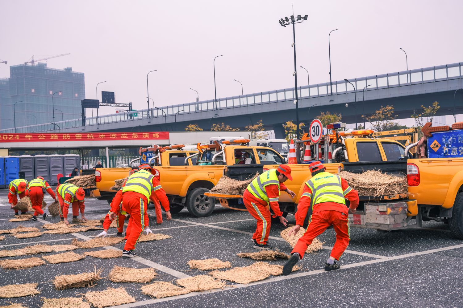 與此同時(shí),針對(duì)橋梁、坡道等極易打滑的特殊路段,應(yīng)急搶險(xiǎn)隊(duì)員們迅速鋪設(shè)防滑草墊。這些草墊不僅吸水性良好,還能增強(qiáng)輪胎與地面間的摩擦力,顯著提升車(chē)輛行駛的穩(wěn)定性,為過(guò)往車(chē)輛增添了額外的安全防護(hù)。