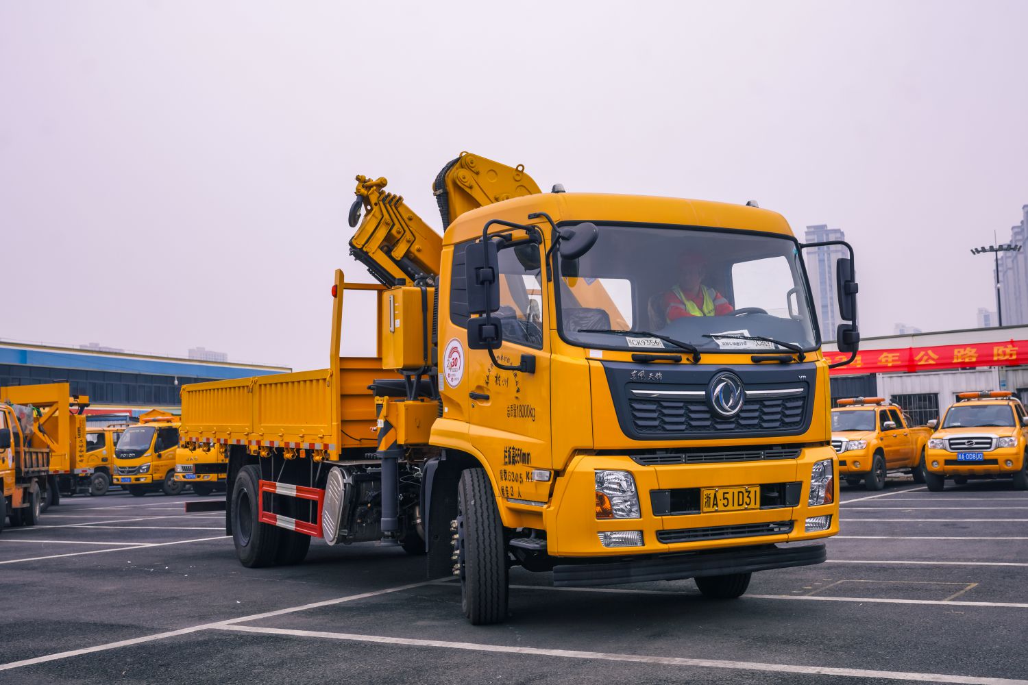 隨車(chē)吊,該車(chē)最大起吊重量10噸,載貨量8噸,用于撒鹽作業(yè)時(shí)隨時(shí)補(bǔ)充物資。