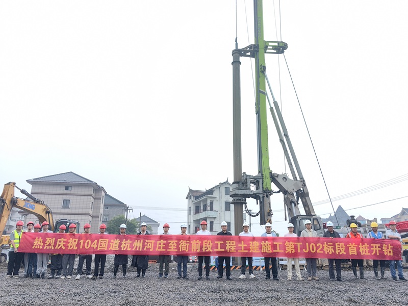 今天上午,104國道杭州河莊至衙前段工程第TJ02標(biāo)首樁、第TJ01標(biāo)二工區(qū)首樁開鉆,標(biāo)志著104國道杭州河莊至衙前段工程全面開工。