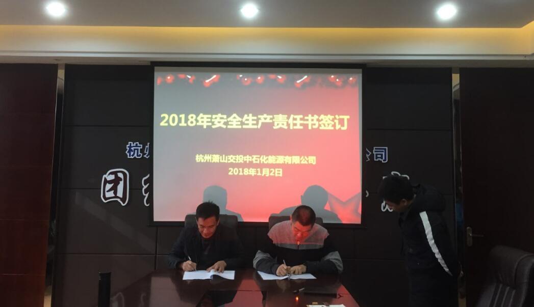 為在新的一年更好地做好公司安全運營工作,1月2日上午,公司在二樓會議室召開一月份安全例會暨2018年安全責任書簽訂儀式,會議由公司總經理張朝杰主持,公司班子領導、全體行政人員及建盈加油站站長參加了會議。