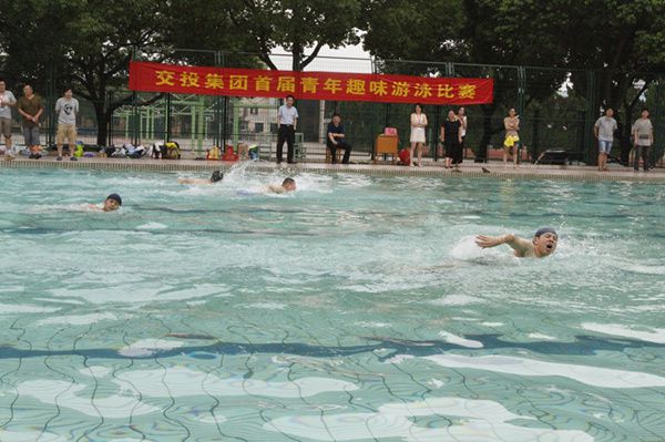 2014年8月10日上午,蕭山中學游泳池畔氣氛熱烈,期待已久的集團首屆團員青年趣味游泳比賽拉開帷幕。集團董事長、總經理方軍,副總經理王齊天,企管部經理孔松良,全程觀看了本次比賽,為游泳健兒們加油吶喊。